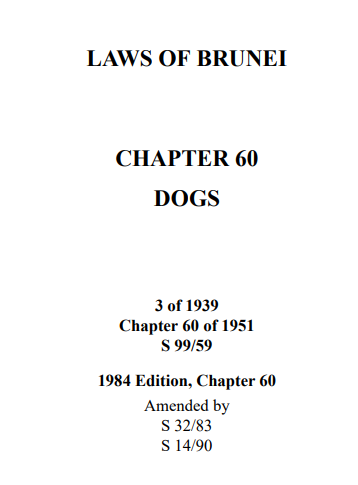 Authorities of Brunei are fully aware of the risks posed by the population of free-roaming dogs on human health. Under the Dogs Act, a law on pet ownership has been implemented to monitor the population of dogs and ensure the owners act responsibly, including by vaccinating their animals against rabies. It is also considered a tool to control the dog population by not letting animals breed out of the owners’ supervision.