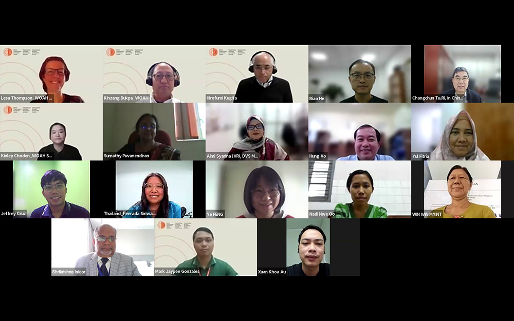 In 2021 and 2022, Dr Changchun Tu, WOAH rabies expert, and his team from Changchun Veterinary Research Institute (CVRI) in China P.R. led online workshops on molecular epidemiology techniques (MET) for rabies to support Members’ understanding of the epidemiology of rabies virus (RABV) in the region. The Members participating in this meeting (India, Indonesia, Malaysia, Myanmar, the Philippines, Sri Lanka, Thailand and VIetnam) previously took part in CVRI-led “hands-on training” workshops either in China P.R. or in their own country and in the online training on MET for rabies.
