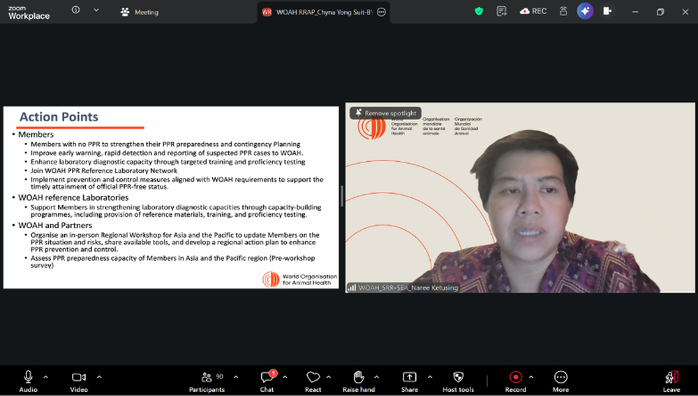 It is in this context that the WOAH Regional Representation for Asia and the Pacific (RRAP) and Sub-Regional Representation for South-East Asia (SRR-SEA) organised a PPR Webinar for countries in Asia and the Pacific on 16 January 2026. The webinar focused primarily on PPR preparedness and emergency response and was organised in response to Members requests and urgent need for information on the global and regional PPR situation. It also aimed to facilitate access to relevant materials and tools to support Members in preventing the incursion and further spread of PPR to other countries and territories.