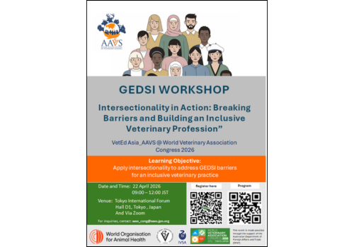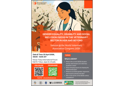 The World Organisation for Animal Health (WOAH), in collaboration with the Japan Veterinary Medical Association (JVMA), the Federation of Asian Veterinary Associations (FAVA), the Asian Association of Veterinary Schools (AAVS), and the International Veterinary Students’ Association (IVSA) Asia & Pacific, is proud to host a dedicated session on Gender Equality, Disability, and Social Inclusion (GEDSI) at WVAC 2026.