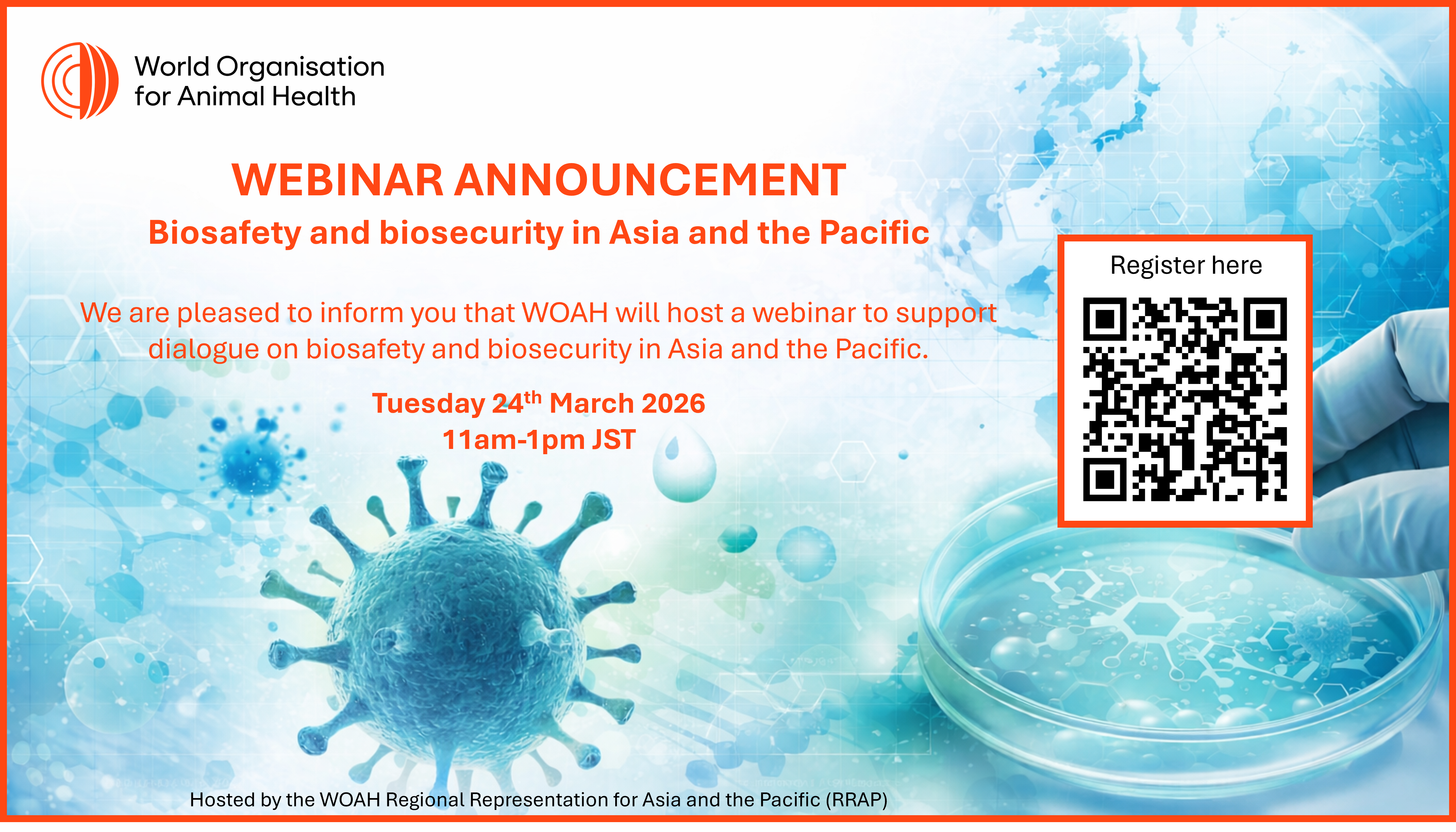 WOAH will host a webinar on “Biosafety and Biosecurity in Asia and the Pacific: Emerging Issues & Regional Priorities”.
