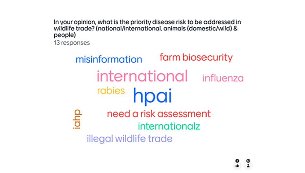 Wildlife trade was identified as a priority for the region, and participants proposed activities on this theme including risk analysis and risk reduction measures.  The WOAH RWHN AP thus organised the webinar on “Wildlife trade: addressing disease risks”, co-funded by the Japan Trust Fund. We especially thank Members who are represented on the Network Secretariat, for their support in preparation of this event.