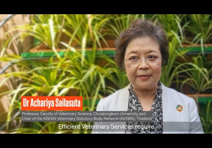 Dr Achariya Sailasuta (Professor, Chulalongkorn University and Chair, ASEAN Veterinary Statutory Body Network) highlights that efficient Veterinary Services comprise trained personnel in various categories and skill levels. She mentions the importance of stakeholder cooperation between veterinary statutory bodies, veterinary authorities, and the private sector – for accurate workforce assessments of what and who are needed in a country.